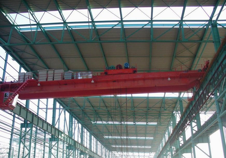 是橋架兩端通過運(yùn)行裝置直接支撐在高架軌道上的橋架型起重機(jī)。它由橋架(包括主梁和端梁)、起重小車、大車運(yùn)行機(jī)構(gòu)和電氣控制系統(tǒng)等部分組成。起重小車上裝有起升機(jī)構(gòu)和小車運(yùn)行機(jī)構(gòu)在橋架主梁上沿小車軌道橫向運(yùn)行;起重機(jī)沿廠房或露天貨場的高架軌道縱向運(yùn)行,其掛梁方向分為與主梁平行和與主梁垂直兩種,并在掛梁下方裝有電磁吸盤,通過電磁吸盤完成物料搬運(yùn)工作。